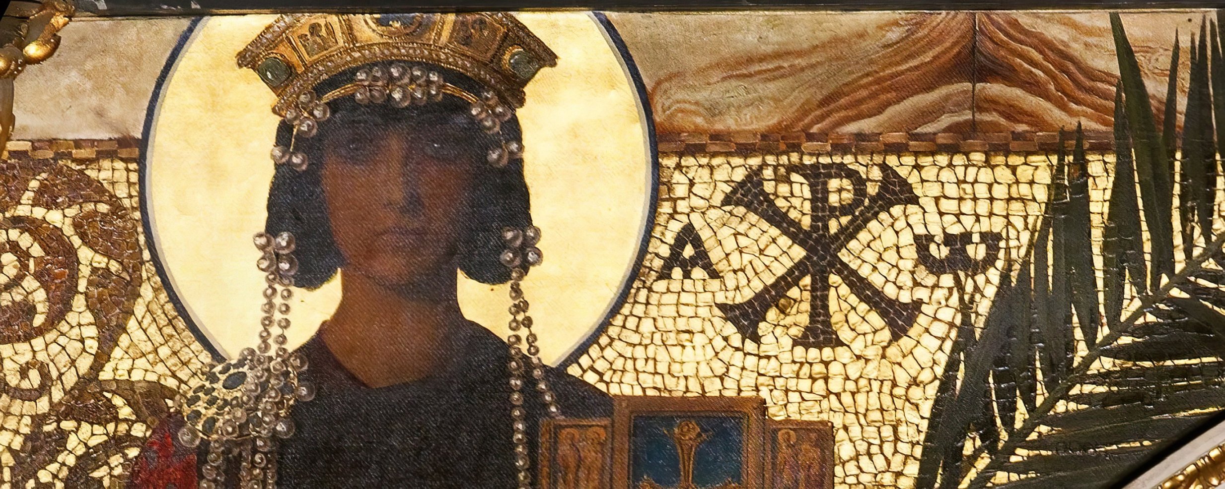 Ignaz Schönbrunner: Copy of the front side of a Byzantine book cover (circa 900) with cloisonné enamel and mosaic, featuring the depiction of Jesus Christ with six apostles and angels, from the Biblioteca Nazionale Marciana, Venice. MAK Inv.nr. KI 782-1. Detail. © Museum of Applied Arts, Vienna